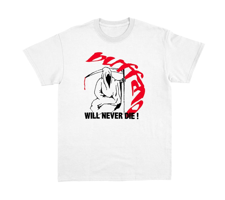 "BURY ME IN BUFFALO" WHITE AND CHROME TEE$10.00 / Sold Out -